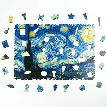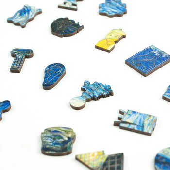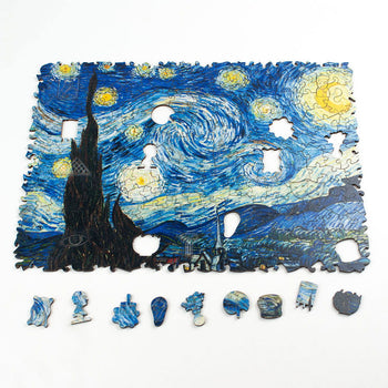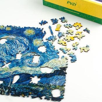 Navegando pelo quebra-cabeça A Noite Estrelada (de Van Gogh) você encontrará diversas peças temáticas de obras de arte desenhadas com laser de alta precisão. Você ficará encantado com a riqueza dos detalhes nas belas peças de quadros, tinta, pincel, artistas, quadro da Mona Lisa, orelha do Van Gogh, Louvre, teatro, entre outros elementos dessa temática! 🎨