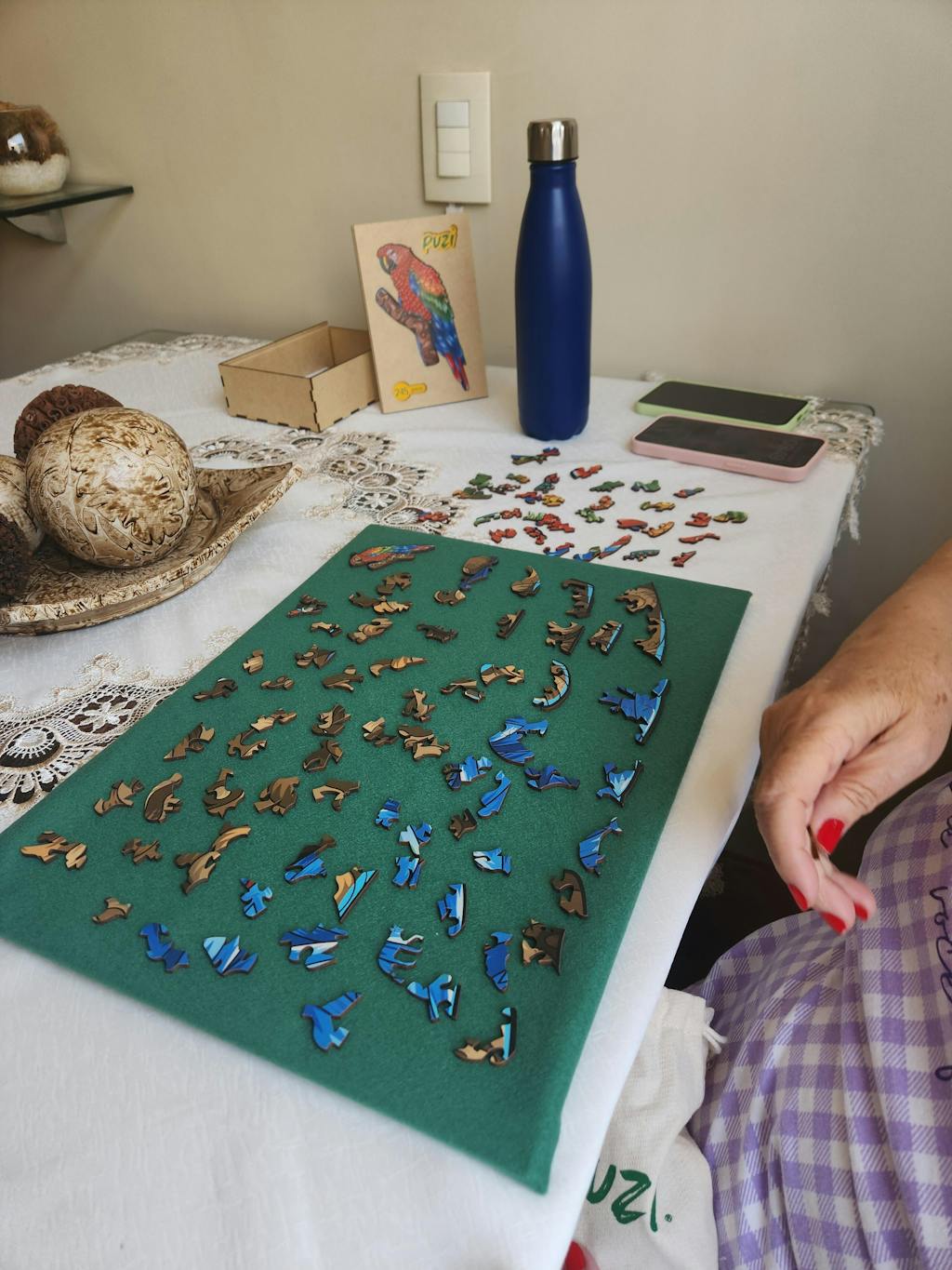 Todas as suas peças possuem formatos diferenciados, oferecendo um quebra-cabeça diferente de tudo o que você já viu. Algumas das peças possuem formato de outros animais da fauna brasileira, e oferecem encaixes magníficos para deixar o desafio de montar o puzzle de madeira da arara muito mais emocionante.