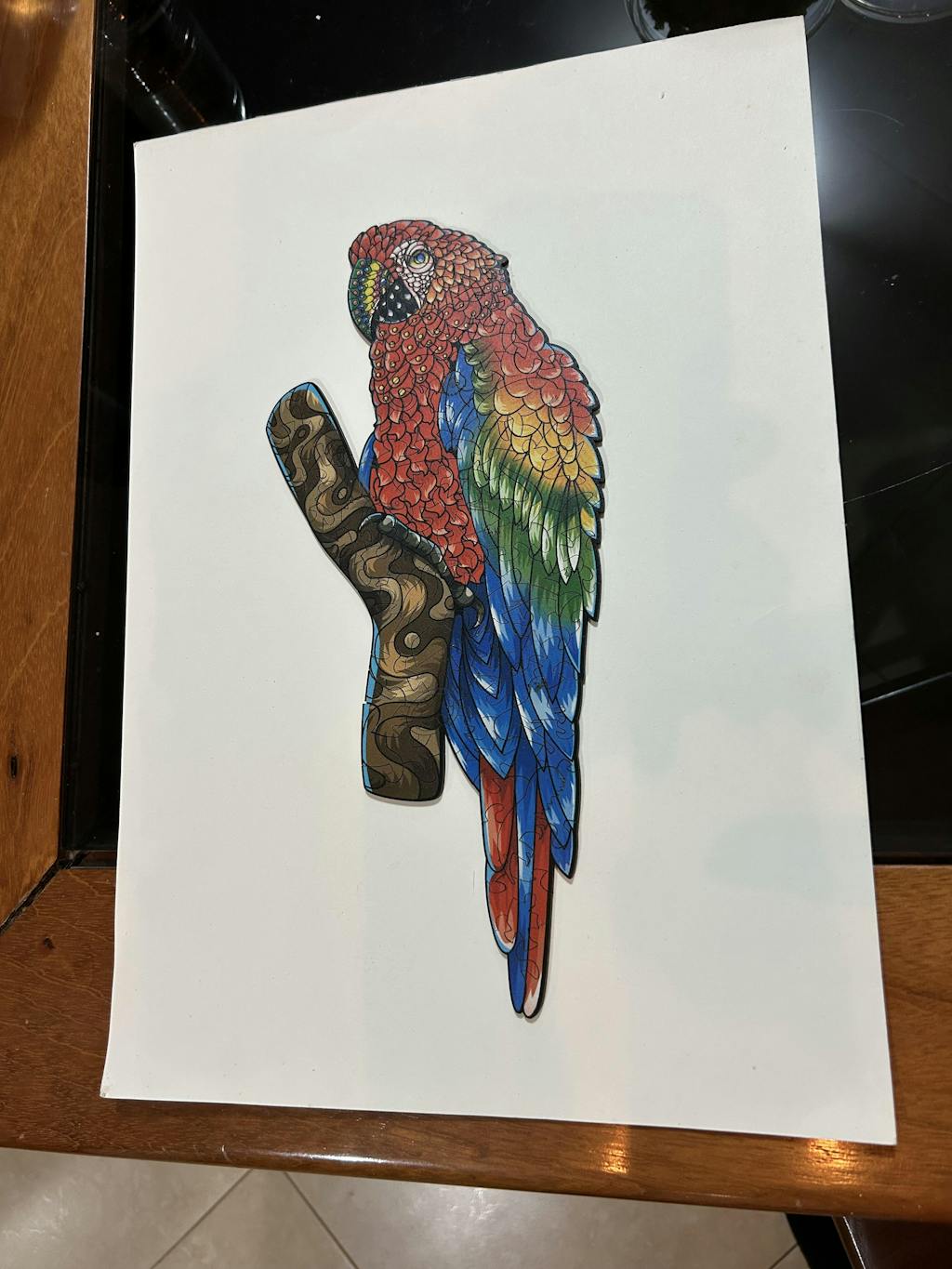 O desenho da arara é bastante colorido e foi desenvolvido por profissionais para trazer uma simetria e contraste de cores fazendo com que a atividade de montar o quebra-cabeça seja relaxante ao mesmo tempo que desafiadora.