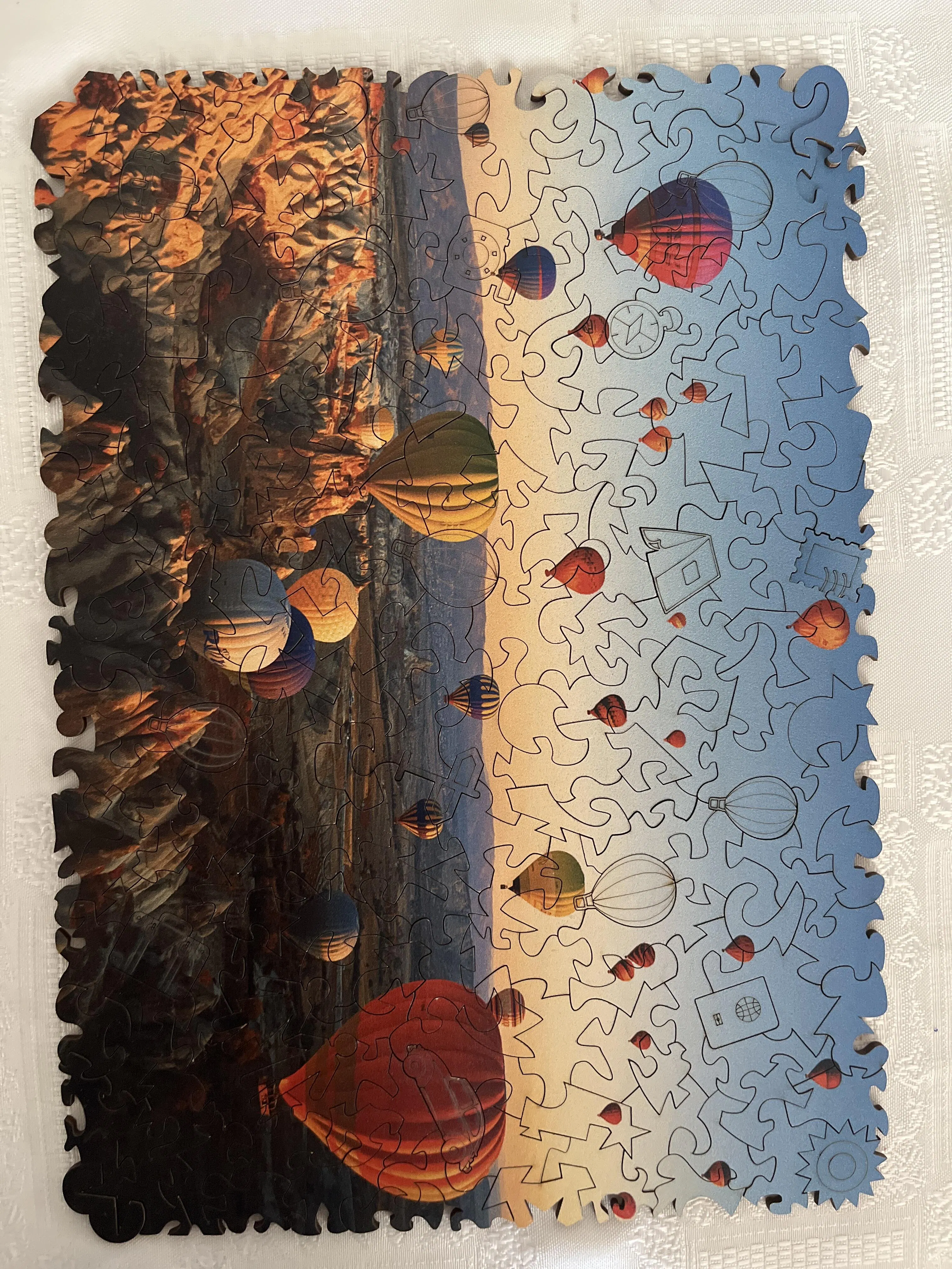 Navegando pelo quebra-cabeça da Capadócia você encontrará diversas peças temáticas da região desenhadas com laser de alta precisão. Você ficará encantado com a riqueza dos detalhes nas belas peças! 📷