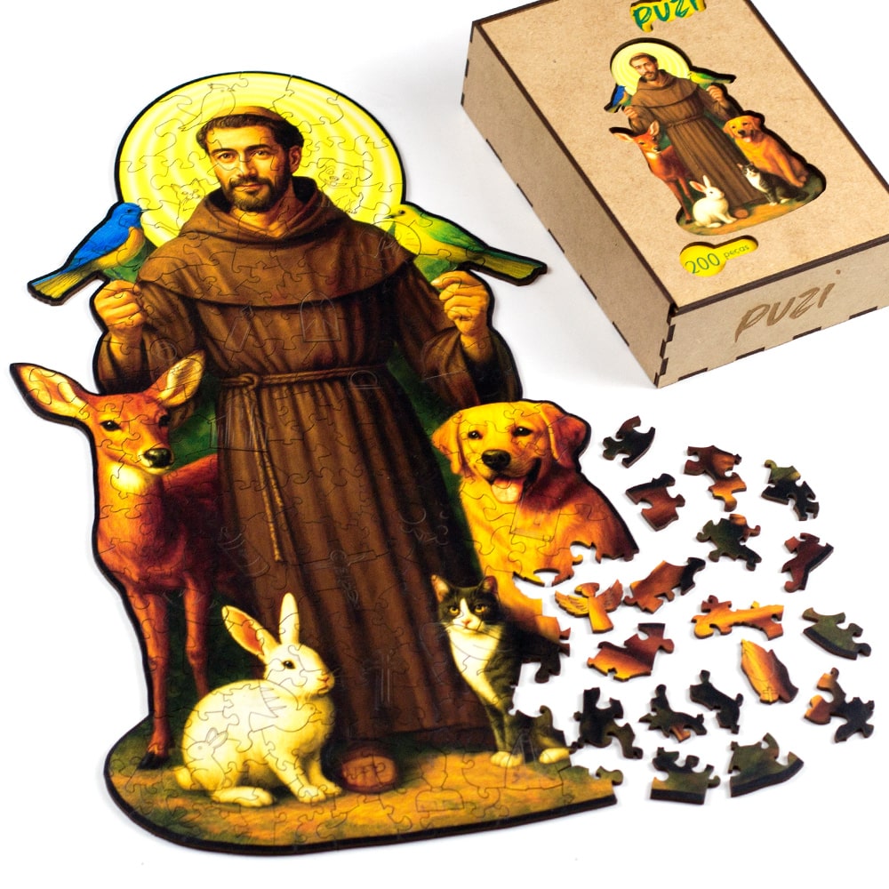 O quebra-cabeça São Francisco de Assis vem em uma embalagem premium de madeira, com um design sofisticado que realça ainda mais a beleza da peça. Este quebra-cabeça é um presente único para devotos, amantes da natureza e colecionadores. 🎁