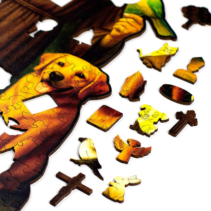 Este quebra-cabeça foi concebido para refletir essa essência. As peças temáticas representam não apenas símbolos cristãos, mas também animais e elementos da natureza que remetem à profunda ligação de São Francisco com a criação. Cada encaixe é mais do que um desafio: é uma oportunidade de contemplação, lembrando que a fé se manifesta também no cuidado com o próximo e com o mundo ao nosso redor.